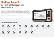 The Thinktool Reader 8 integrates 15 must-have maintenance reset functions, ensuring seamless operation and maintenance of vehicle systems: